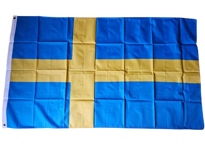 Schweden Fahne, 100% Polyester, ca. 150 cm x 90 cm, mit 2 Metallösen am Rand zum aufhängen.