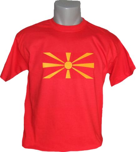 T-Shirt (205 g / m², 100% Baumwolle) in rot mit Mazedonien Fahne bedruckt.