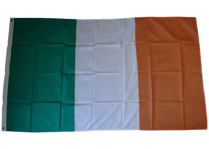 Irland Fahne, 100% Polyester, ca. 150 cm x 90 cm, mit 2 Metallösen am Rand zum aufhängen.